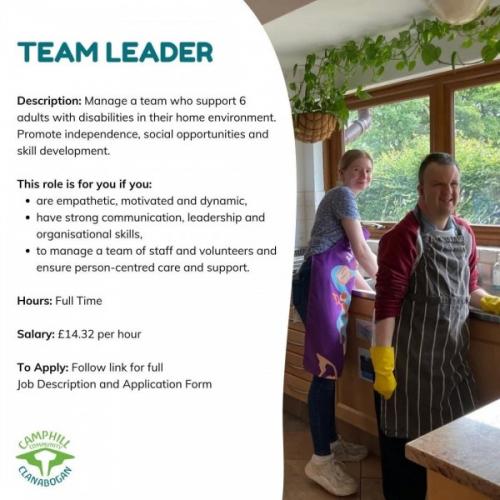 ⭐️⭐️⭐️ CAMPHILL CLANABOGAN REQUIRE A TEAM LEADER