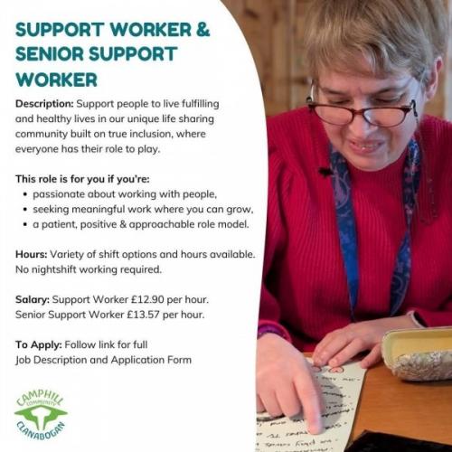 We are recruiting for Support Workers and Senior Support Workers in our unique Supported Living community in Clanabogan, Omagh.